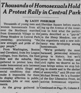 Pride Rally in Central Park article, June 29, 1970, New York Times